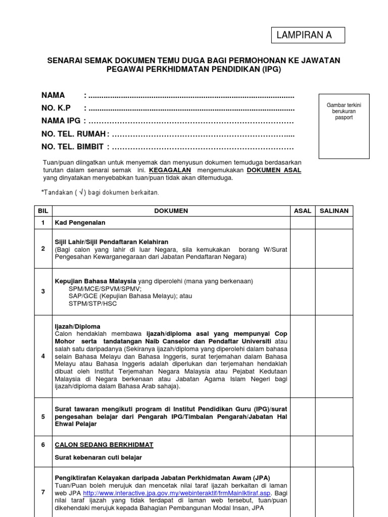 Pdf Senarai Semak Dokumen Temu Duga Bagi Permohonan Ke Jawatan Pegawai Perkhidmatan Pendidikan Puspanathan Sugumaran Academia Edu